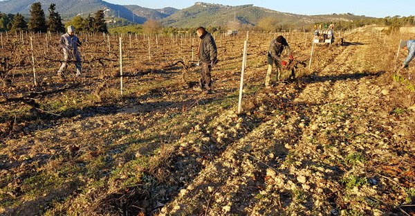 Winter pruning on some of the vines is similar to green pruning.