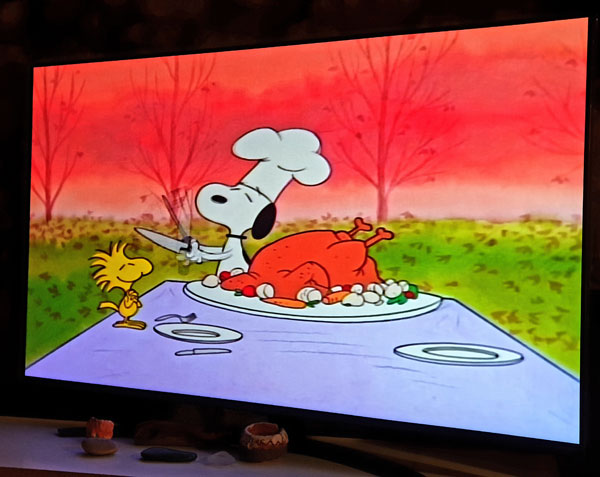We enjoyed a “different” Thanksgiving with only four friends. As always there was plenty of food and laughter to go around. After dinner we watched Charlie Brown’s Thanksgiving. No subtitles needed as it is all just a bit of fun.