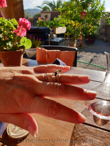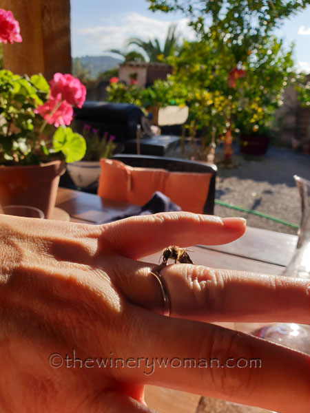 I’ve read since that a bee landing on you is good luck. Perhaps she thought I was a flower. Or maybe she liked me because I saved her from the wine carafe. I’m just happy she felt safe with me. A close encounter of the best kind.