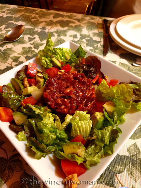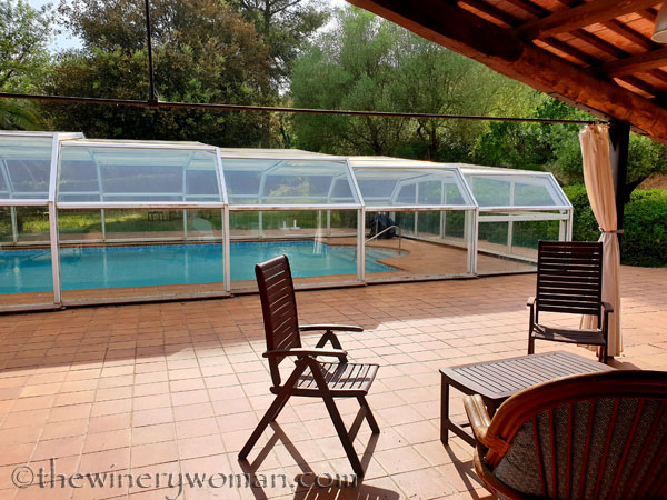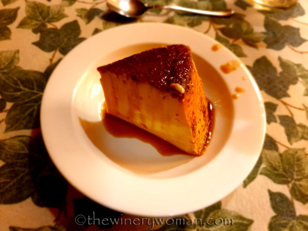 We enjoyed a bottle of red by the pool with Lupe sleeping at our feet. Dinner was served at 9pm and WOW everything was amazing. The first dinner the only thing I took a photo of was the desert. Crème Caramel with orange. YUMMY!!